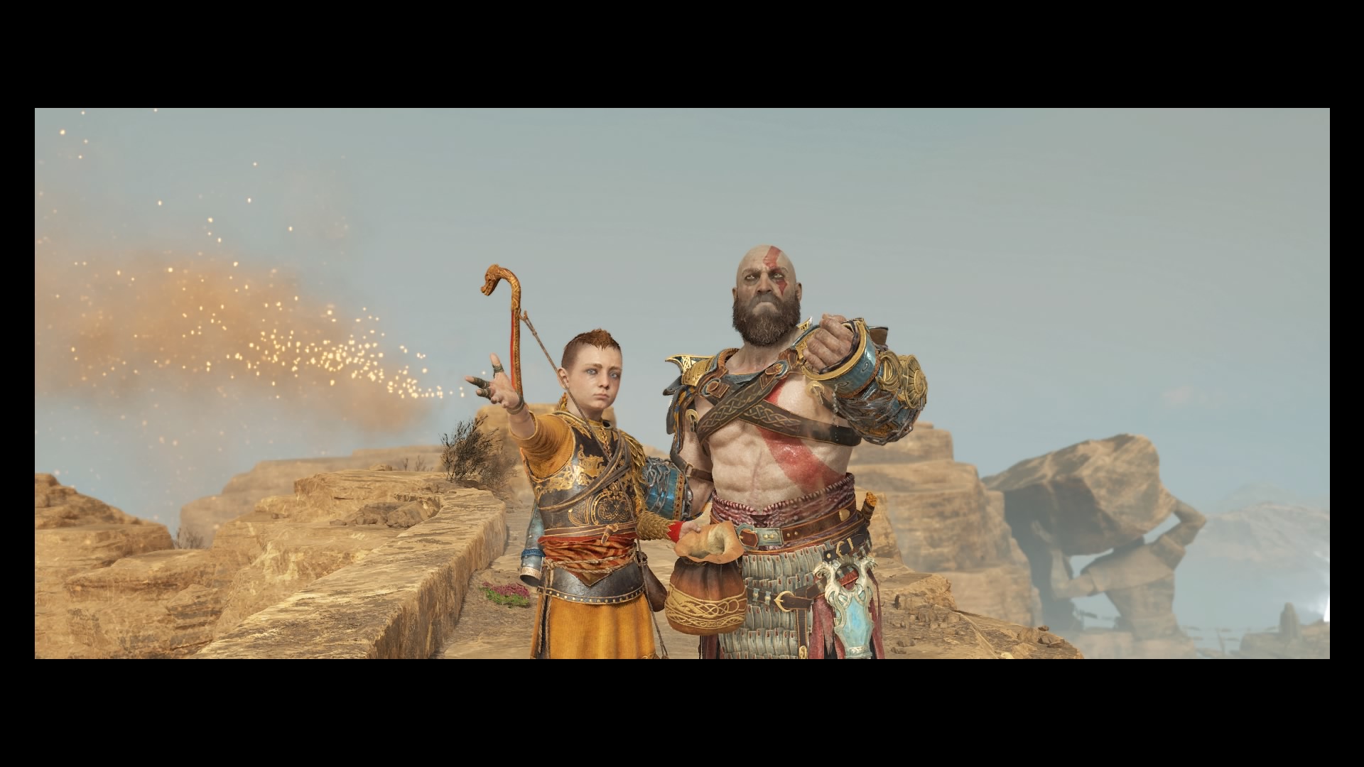 在约顿海姆的壁画前,奎爷说“不,这是你的经历”,一瞬间有种次元壁打破的感觉我愣了一下。在约顿海姆的山巅,奎爷第一次叫了阿特柔斯“son”,而不是“boy”。